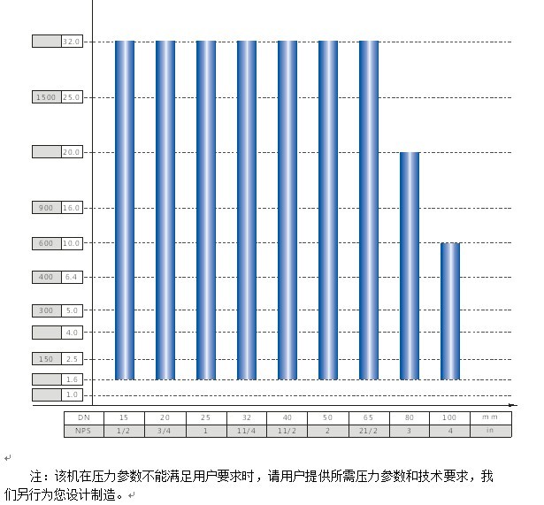 5.9 JWZ-1000型 阀门公称通径与公称压力试验范围