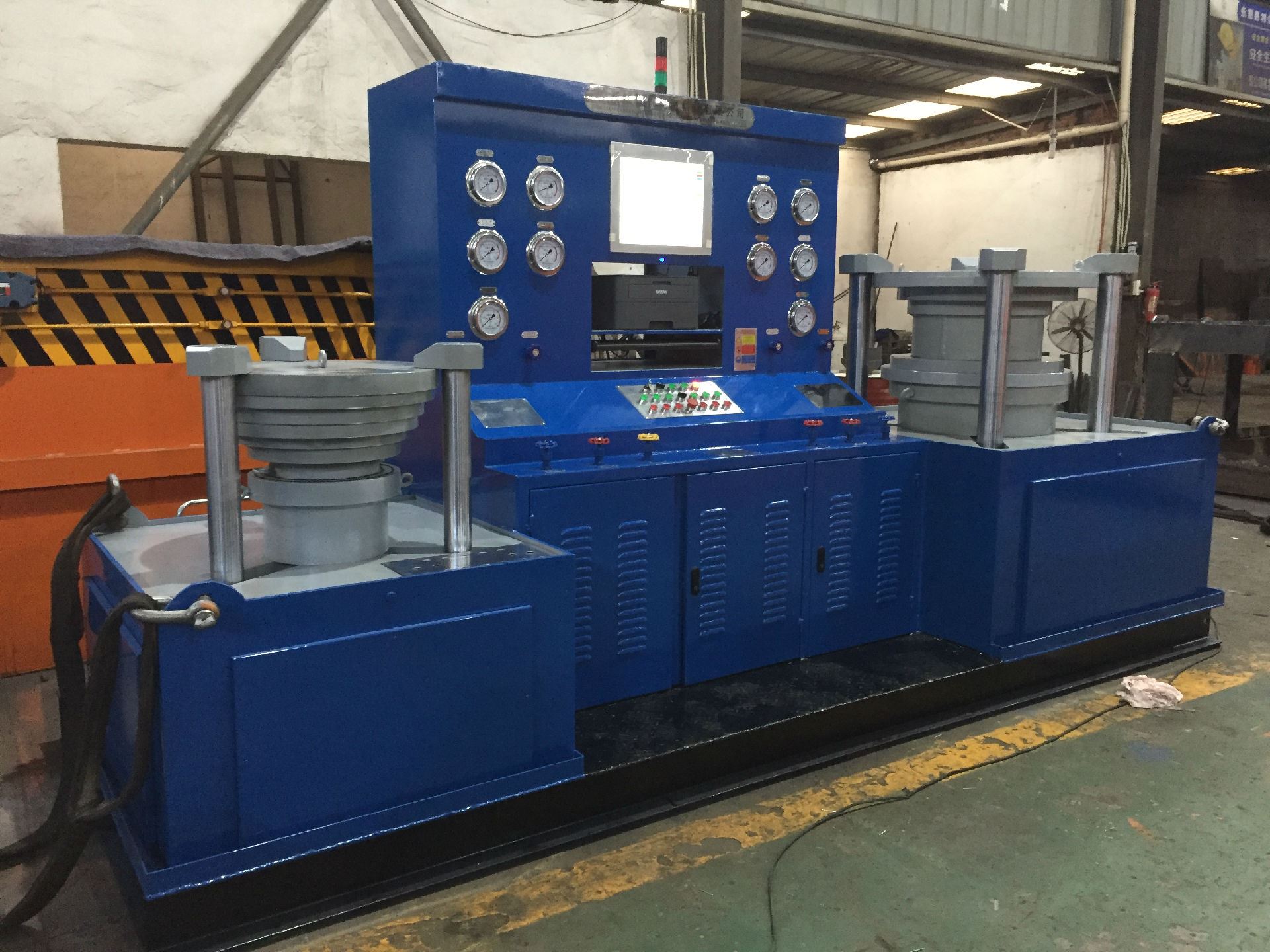 工作过程:根据阀门的公称通径和压力调整油缸压紧压力——压紧工件——打开低水泵快速注水——打开高压水泵——保压计时——卸压、复位。